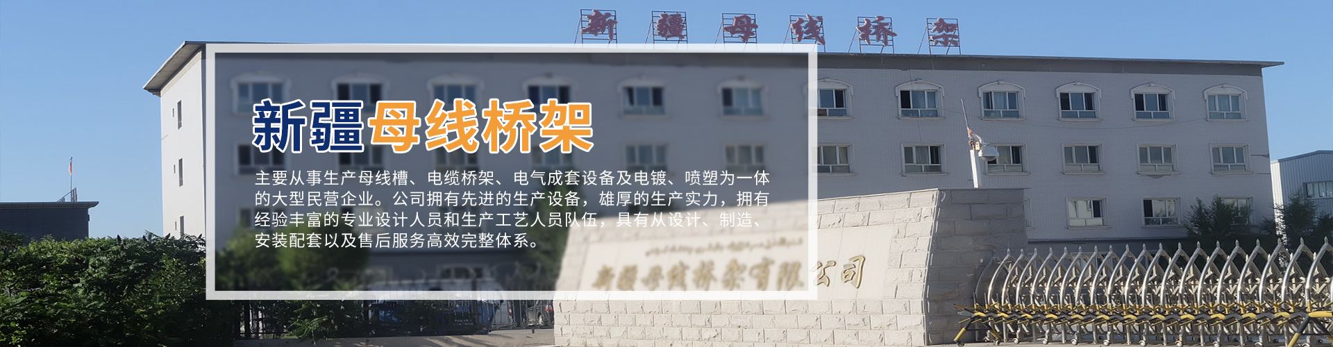 新疆母線橋架有限公司是國內早期主要從事生產母線槽、電纜橋架、電氣成套設備及電鍍、噴塑為一體的大型民營企業。公司擁有先進的生產設備,雄厚的生產實力,擁有經驗豐富的專業設計人員和生產工藝人員隊伍,具有從設計、制造、安裝配套以及售后服務高效完整體系。企業坐落在首府烏魯木齊市經濟技術開發區,高鐵站附近,占地面積40畝,廠房面積20000平米,生產的產品覆蓋全疆及周邊國家,被廣泛應用于石油、化工、電力、交通、建筑等各個領域。新疆母線橋架...
